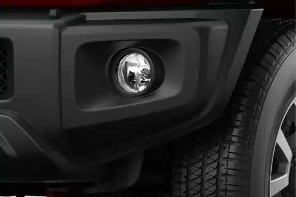 Kesan retro masih sangat terjaga dengan lampu depan bentuk bulat seperti pendahulunya, meski sudah memakai LED. Lampu sein dan lampu kabutnya juga bulat, meski dengan ukuran lebih kecil. Beralih ke samping, desain Suzuki terasa simpel, namun sangat berkarakter. Overfender plastik solid memberi kesan tangguh dan gahar dari SUV mungil ini.